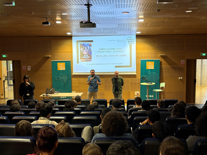 À l’occasion de la Journée internationale des droits des femmes, 200 élèves du Gard ont assisté le mardi 10 mars 2026 aux Archives départementales du Gard à la projection du film documentaire "39-45, elles n’ont rien oublié".