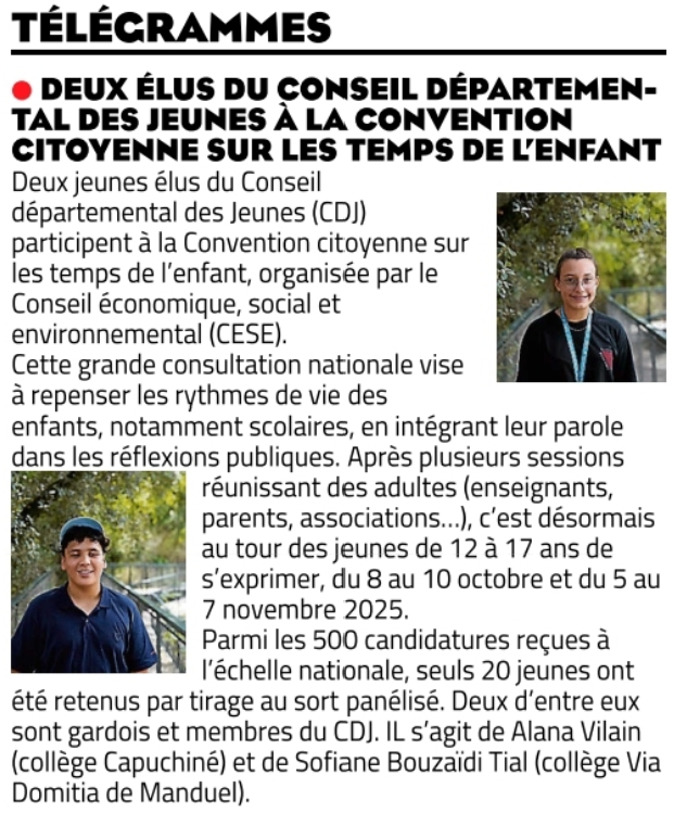 Le Midi Libre met à l'honneur deux élus du Conseil départemental des Jeunes !
