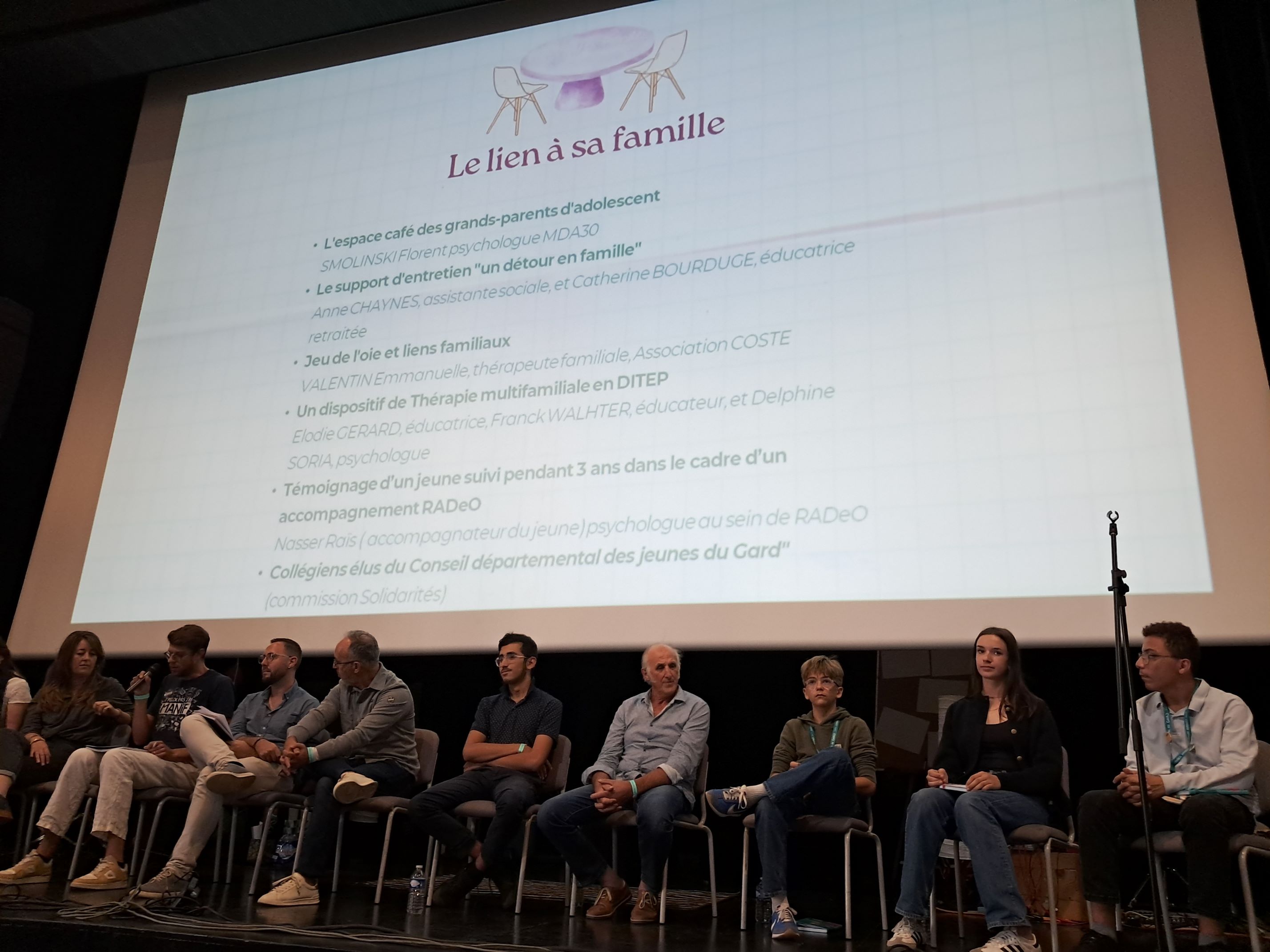 Après avoir soigneusement préparé leur intervention, Noé, Anaé S. et Valentin ont représenté leurs camarades au cours de la table ronde proposée sur le lien de l'adolescent à sa famille. Ils ont ainsi pu présenter leur démarche et leur projet. Tous ont également pu découvrir des dispositifs, dont certains les ont particulièrement inspirés comme l'Espace café des grands-parents mis en place par la Maison des adolescents d'Uzès ou le dispositif "Jeu de l'oie et liens familiaux", présenté par Emmanuelle Valentin, thérapeute familiale à l'association Coste.