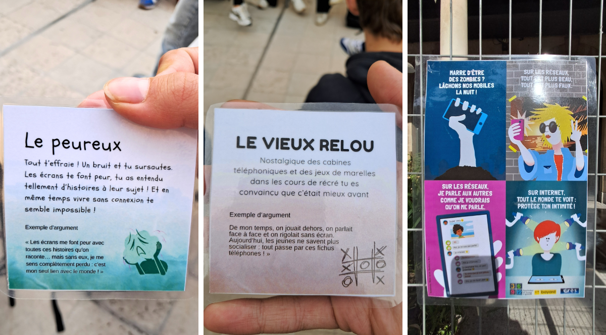 Dans l'atelier proposé par les Francas, les jeunes étaient invités à entrer dans la peau d'un personnage (voir ci-dessus le type de profils) et à débattre sur l'usage du portable. Où l'on découvre les incroyables talents de comédien de Tristan !!